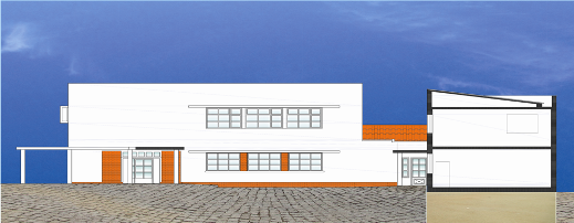 - Área bruta de construção remodelada: aproximadamente 288 m2 (correspondente a 1 sala de aula, 1 instalação sanitária para meninas e uma instalação sanitária para meninos, vestiários para o pessoal de serviço, refeitório e criação de uma biblioteca).