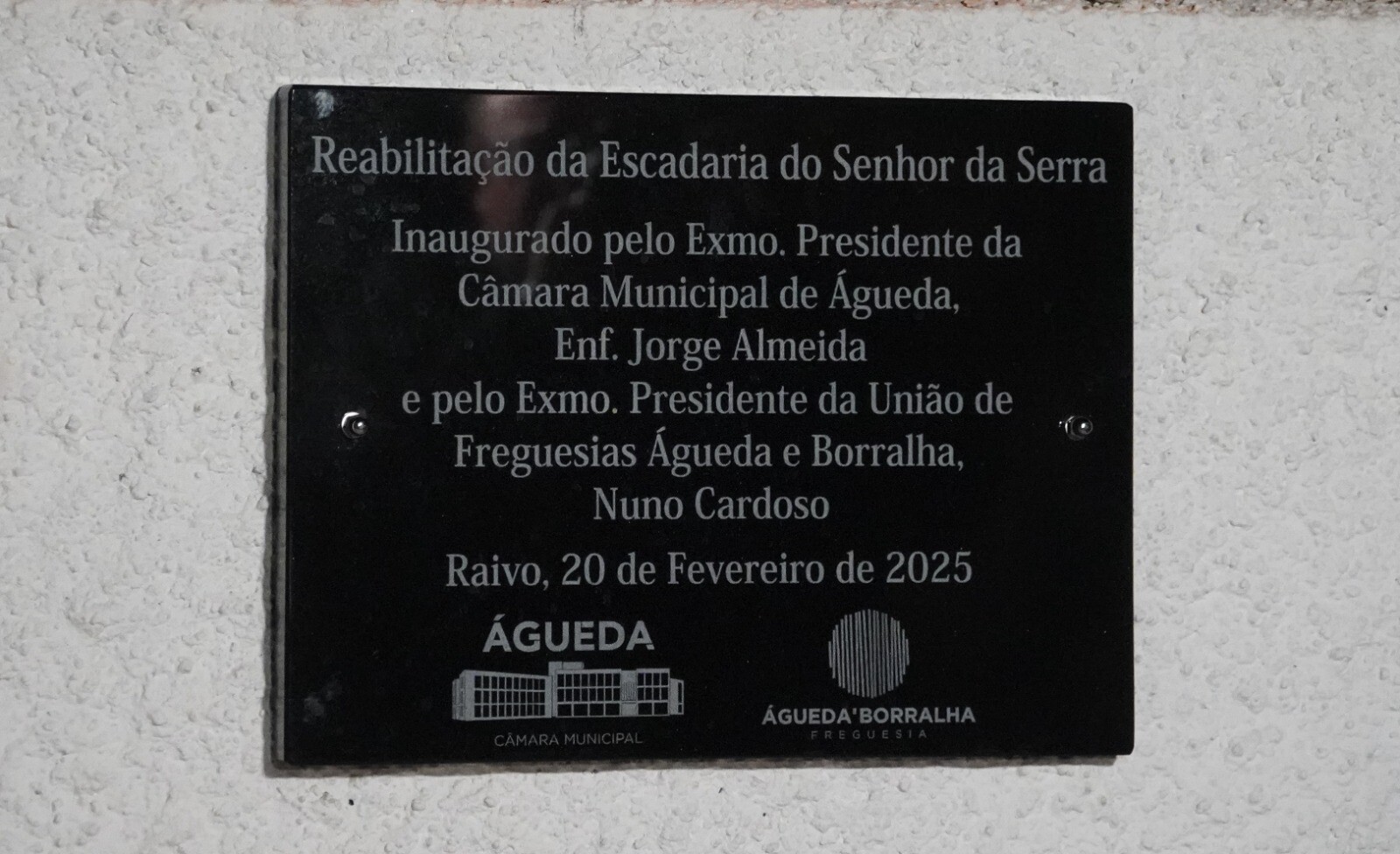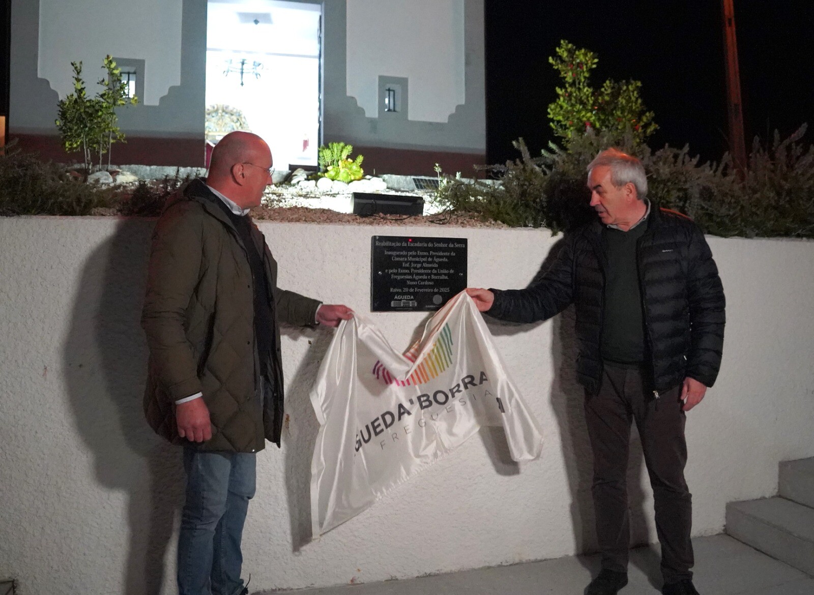 A reabilitação da Escadaria do Senhor da Serra foi, ontem ao final do dia, inaugurada no Raivo, numa cerimónia onde foi destacada a valorização que esta intervenção dá a este lugar da União de Freguesias de Águeda e Borralha. A obra, que inclui a escadaria, a iluminação e a transformação estética do espaço, implicou um investimento de 35 mil euros e contou com o apoio integral da Câmara Municipal de Águeda.